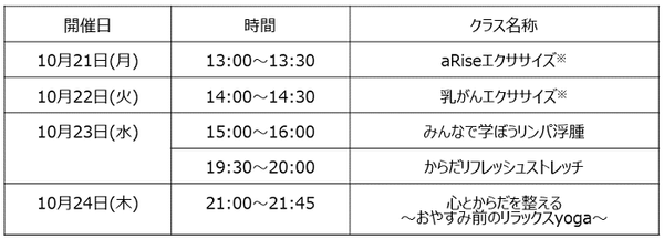 ※aRiseエクササイズ:心身を整え必要な体力を維持することを目的としたプログラム