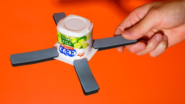 ビヒダスヨーグルトの容器は軽くてとっても丈夫。この容器とさまざまなおもりを使って、自分だけの「フライングカップ」をつくり、遠くまで飛ばしてみよう!
