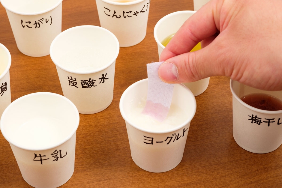 液体の性質によって色が変わるリトマス紙。このリトマス紙と似た効果をもつ試験紙を身近な材料で手作りして、ヨーグルトのすっぱさのひみつを解き明かそう!