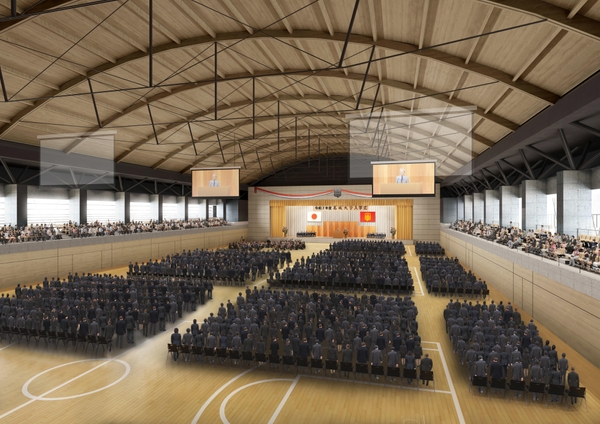 本学は2025年7月の完成を目指し、天白キャンパスに全学共用棟を建設します。天白キャンパスの正面アプローチを登った先に建設予定で、幹線道路からも視認でき、2026年に開学100周年を迎える本学の新たな顔となる施設です。体育の授業やクラブ・サークル活動で使用する他、入学式や卒業式などの式典の実施も予定。全学共用棟に隣接するクラブハウス棟も新たに建設し、学生たちの新たな活動拠点になります。