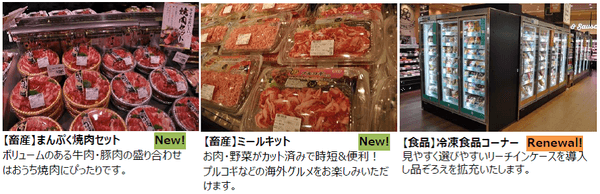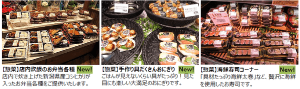 ご自宅での手作り料理や、すぐに食べられる即食ニーズにお応えするため、食料品売り場を1.3倍に拡大し、品ぞろえを拡充いたします。各コーナーより新商品も多数登場いたします。