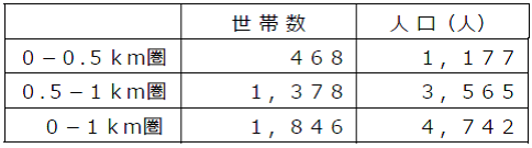 ・店舗から1㎞圏内は、単身世帯が26.2%、2人世帯が32.1%と全体の6割が少人数世帯です。5人以上世帯も奈良県平均を上回ります。