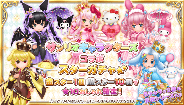 期間限定で、サンリオキャラクターズおしゃれ衣装のガチャキャンペーンを開催!