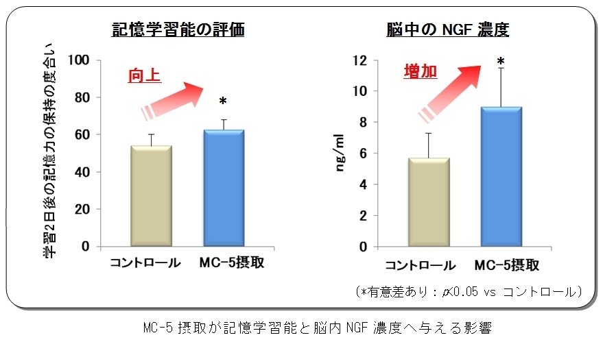 MC-5摂取が記憶学習能と脳内NGF濃度へ与える影響【発表のサマリー】