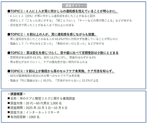 ●TOPIC①:4人に1人が耳に何かしらの違和感を抱えていることが明らかに。