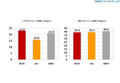 <平均ダウンロード速度・最大ダウンロード速度 (Mbps)>