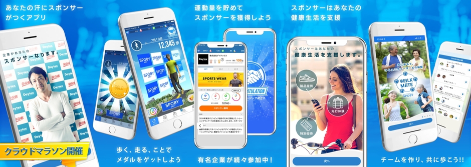 2018年にリリースしたウォーキングアプリ『SPOBY』は、ユーザーがスマートフォンを持って歩くとスポンサー企業から特典が受けとれるゲーム感覚のウォーキングアプリです。好評を得て、口コミだけで13万ダウンロードを突破した『SPOBY』は、シンプルな操作とユーザーメリットにより運動意欲を持続させ、若者からシニア層から評価いただき、半年間で全アクティブユーザー1日あたり1,000歩の運動量の底上げを実現しました。