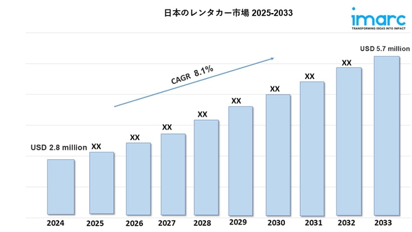 IMARCグループの最新レポートによると、日本のレンタカー市場規模は2024年に280万米ドルに達しました。今後、IMARCグループは、この市場が2033年までに570万米ドルに達し、2025年から2033年の間に8.1%の年平均成長率(CAGR)を示すと予想しています。