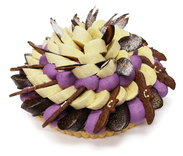 しっとりとして甘みの強いバナナと、色鮮やかな紫芋クリームを合わせ、コウモリのクッキーとチョコレートでゴーストタウンをイメージして飾りつけました。カスタードクリームのベースとともに楽しめます。