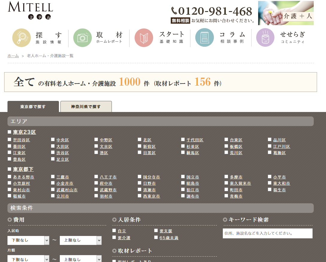 老人ホーム・介護施設の紹介サイト「MITELL(ミテル)」