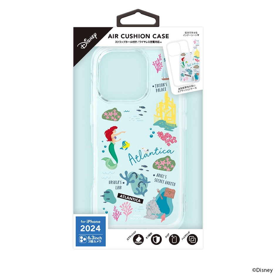 ディズニーキャラクターデザインのインナーシートとセットになった360°エアクッション構造でiPhone本体を衝撃から守るエアクッションケースです。