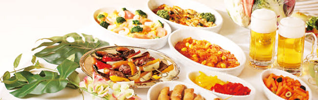 オードブル・温製料理・フライ料理・中国料理・サラダ・デザートをセルフサービスにて存分にお楽しみいただけます。