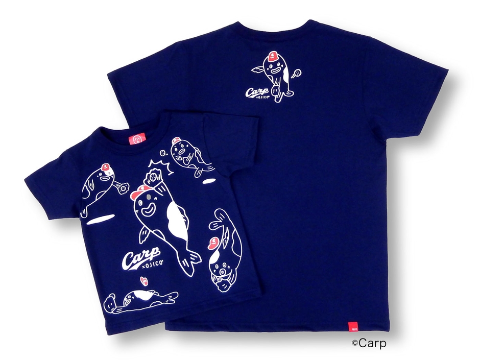 「ファインプレー」をテーマに様々なシチュエーションで活躍する鯉がデザインされており、バックプリントにはグラブトスが描かれている。フロントからバックにかけてOJICOらしい遊びごころとカープファンにも嬉しい1枚となっている。