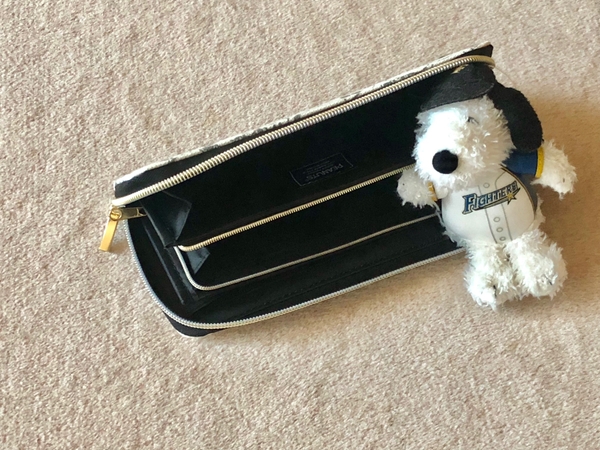 このお財布には白と黒、そしてアクセントのウッドストックが黄色とまさに金運が良くなる色が使われていますね…!