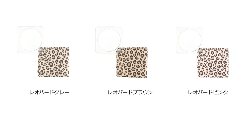 丈夫で上品な人工皮革素材に、優しいパステルカラーのレオパード柄をデザインしました。ブラウン、グレー、ピンクの3色展開のため、どんなファッションにも合わせやすく、オシャレが引き立つワンポイントアクセサリーとしても最適です。