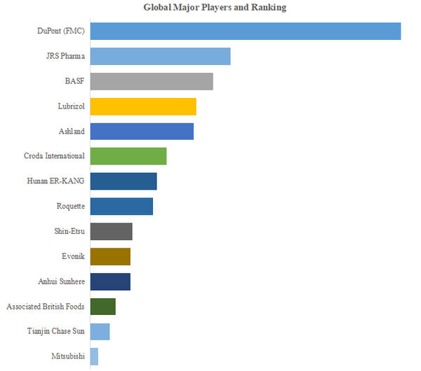 QYResearchのトップ企業研究センターによると、医療サプリメントの世界的な主要製造業者には、DuPont (FMC)、JRS Pharma、BASF、Lubrizol、Ashland、Croda International、Hunan ER-KANG、Roquette、Shin-Etsu、Evonikなどが含まれている。2023年、世界のトップ5企業は売上の観点から約2.0%の市場シェアを持っていた。