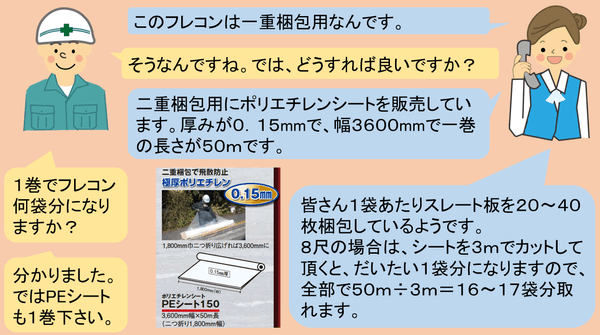 ■このマニュアルにより、アスベストレベル3のスレート板等の長尺物は、原則、原形のまま解体することが規定され、併せて原形のまま収集・運搬することが原則義務化され、我が社のロングタイプのフレコンバッグは、この基準内容に準拠したものであるとして上記のマニュアルにも写真入りで紹介されています。