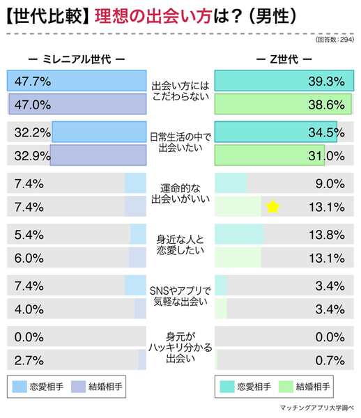結婚に「運命的な出会い」を求める人がもっとも多いのはZ世代男性