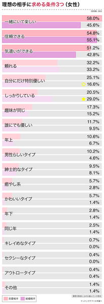 恋愛より結婚のほうが、男女ともに「人間性」を相手に求める傾向が強い