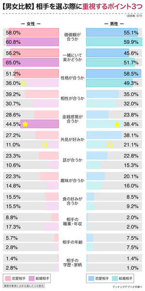 結婚では「金銭感覚」をより重視、「外見が好みか」は重要度下がる傾向