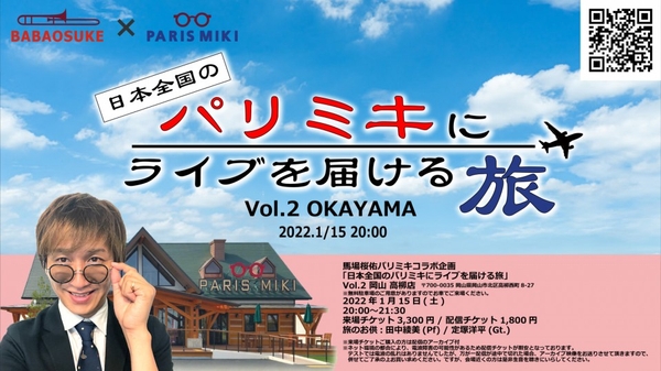 トロンボーンプレイヤー馬場桜佑氏 「日本全国のパリミキにライヴを届ける旅」 2022年1月15日20:00~ 岡山 メガネの三城高柳店 ライヴ開催決定!