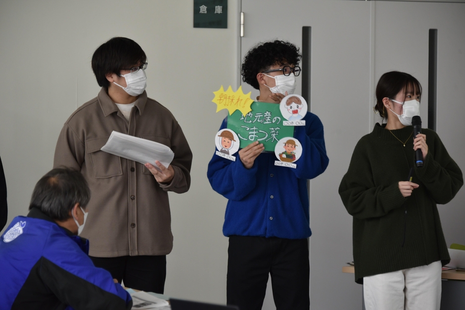 終了後、亀井楓奈さん(2年)は「コロナで考える企画に制限もあって苦労しましたが、無事に発表を終えてよかったです」とホッとした表情。佐藤直貴さん(2年)も「アイデアに課題があってもチームで話し合ってまとめることができ、JAの方々にしっかり伝えることができました」と振り返りました。
