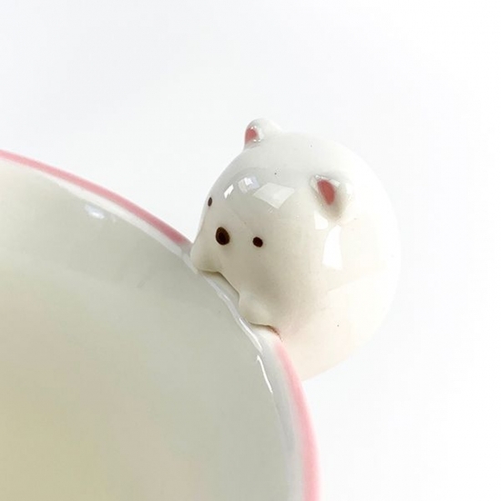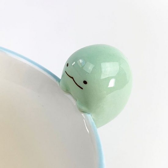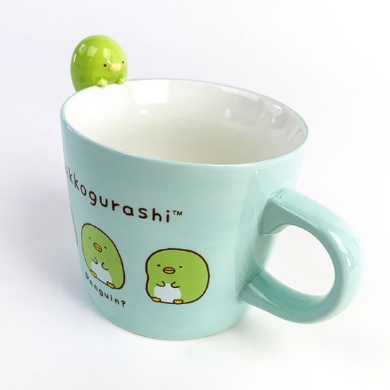 ねこ とんかつ ぺんぎん? えびふらいのしっぽをまとめて再入荷できました]つるりとしたすみっコがマグカップのフチにちょこん。めっちゃかわいい♪♪