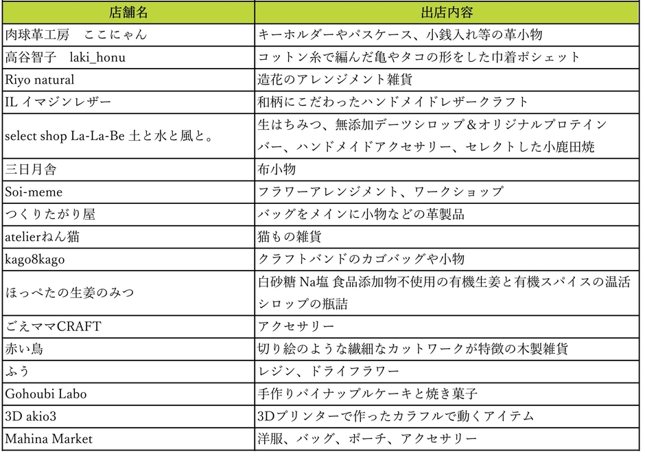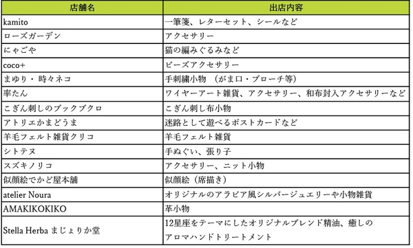 「深大寺手作り市」とコラボし、植物やボタニカルグッズ、手芸・工芸など世界にひとつだけの個性豊かな手作り作品の出店。農産物やキッチンカーも出店します。