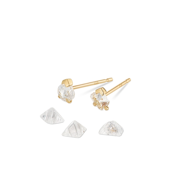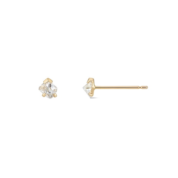 ケイ・ウノのダイヤモンド研磨の工程で生まれるたくさんの小さな原石(本来は使用されないもの)を、あえてそのままの姿でピアスにしました。原石の仕入れからカットまで自社で行うケイ・ウノならではのジュエリーです。