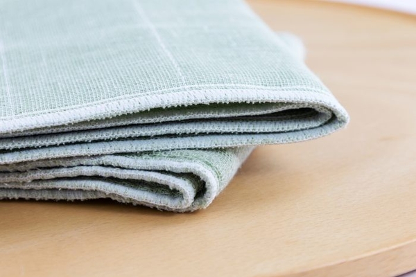 サイズは約30cm×30cmと、キッチンでの食器拭きやテーブル拭きに最適です。また、床やガラスにも優しい質感なのでお掃除にも幅広くお使いいただけます。肌触りが良いため、小さなお子様のお口拭きとしても安心してお使いいただける、便利な一枚です。