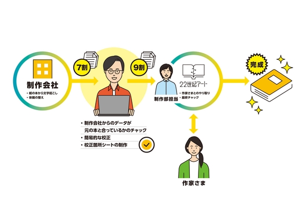 株式会社22世紀アート(本社:東京都中央区日本橋浜町3-23-1、代表取締役:向田翔一)は、もっと気楽に、本づくりに関われる仕事環境を提供したいという想いから、プロの出版社制作部スタッフがアドバイスをしながら副業を支援していくサービスの募集を開始いたしました。