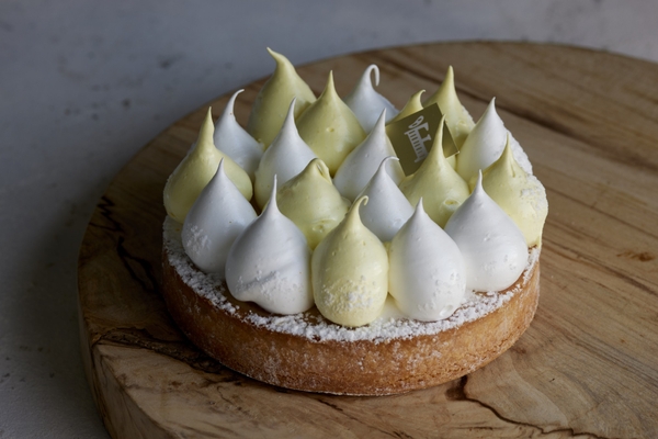 香ばしく焼き上げたタルト生地に、エシレ バターにレモン果汁を入れた クリームを敷き詰め、その上に彩り鮮やかなメレンゲを隙間なく飾り付け ました。