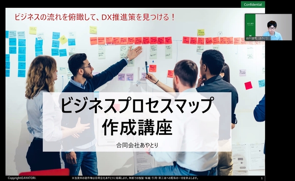合同会社あやとり(本社:静岡県浜松市、CEO:生田明子)は、デジタルを活用したマーケティング変革やDX推進を目指す企業向けに、ビジネスの流れを俯瞰してDX推進策を見つけるためのビジネスプロセス可視化フレームワーク「ビジネスプロセスマップ」を研究開発し、このフレームワークの使い方と作成ワークショップを組み込んだ公開講座や企業研修の提供をしています。また、このサービスをより詳しく知っていただくためのサービス解説と企業における活用方法の紹介をおこなう無料ウェビナーの開催も決定いたしました。