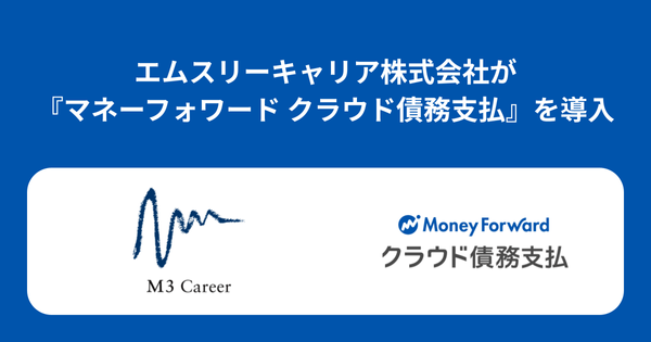 株式会社マネーフォワードは、エムスリーキャリア株式会社(以下、エムスリーキャリア)が、『マネーフォワード クラウド債務支払』の導入を決定したことをお知らせします。