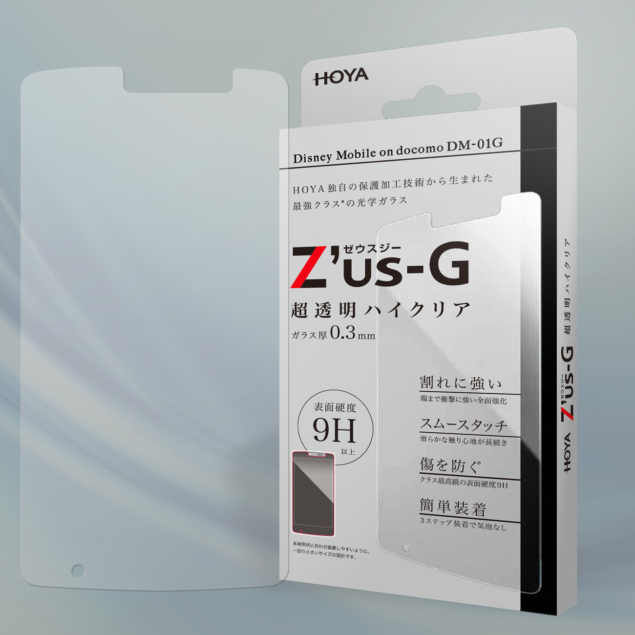 HOYA株式会社(本社:東京都新宿区、代表執行役CEO:鈴木洋)の100%子会社であるHOYAサービス株式会社(本社:東京都中野区、社長:大原幸男)は、Disney Mobile on docomo(ディズニー モバイル オン ドコモ)DM-01Gに対応したガラス厚0.3mmの新型液晶保護フィルム、Z'us-G(ゼウスジー)を5月28日から販売開始致します。