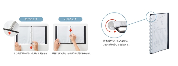 株式会社LIHIT LAB.(本社:大阪市中央区農人橋1-1-22 代表取締役社長:田中宏和)は、2025年12月下旬より、AQUA DROPs(アクアドロップス)シリーズより、多種多様な書類サイズに対応したクリヤーブック<ポケット交換式>の新ラインナップを発売いたします。(3品番3SKU)同シリーズのクリヤーブック<ポケット交換式>は、ポピュラーなA4サイズから大判サイズ(B4、A3、B3、A2)まで、取り揃えが豊富な点でご好評いただいているシリーズです。この度、さらに幅広い種類の書類サイズに対応するため、新ラインナップとして「B6・E型」、「A5・S型」、「B5・S型」の3タイプを追加。お持ちの様々な書類サイズの収容を同シリーズで解決します。とじ具の特長として、表紙を360°折り返してもスムーズに使用できる設計なので省スペースで使用することができます。また、とじ具の開閉は、下部のボタンを押すと簡単に開き、とじ具のリング部分をつまむだけで簡単に閉じることができます。書類の閲覧やポケットの交換など、一連の動作におけるストレスをできるだけ抑えた自然と使いやすい使用感となっております。サイズ展開の拡充により、同シリーズでファイル類を統一できる幅がさらに広がります。