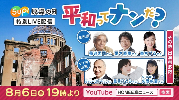 また、祈りの1日をドキュメントで振り返る他、「とうろう流し」など今の広島をライブでお伝えします。