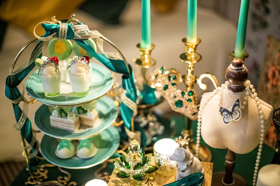 推しカラーに特化した、好きなものだけを身につけて自分だけの贅沢な時間を過ごせる新感覚のコンセプトルーム「It’s My Color !」。第3弾は、“幸福”の意味を持つエメラルドグリーンがテーマ。一歩客室に踏み入れた瞬間、非日常感じる空間が広がります。また、ホテル内ラウンジで大人気の商品、『プリンセスアフタヌーンティー~Happiness Emerald~』を室内でゆったりとお召し上がりいただけます。