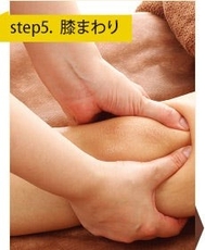 膝まわりはグッと指を入れ込むように、圧をかけながらマッサージをします。