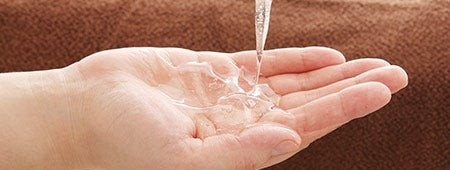 ヒートジェルを用意します。伸びの良いテクスチャーで、圧をかけるマッサージに最適です。手に取った時はジェル特有のひんやりとした感じがありますが、手で馴染ませるとポカポカしてきます。