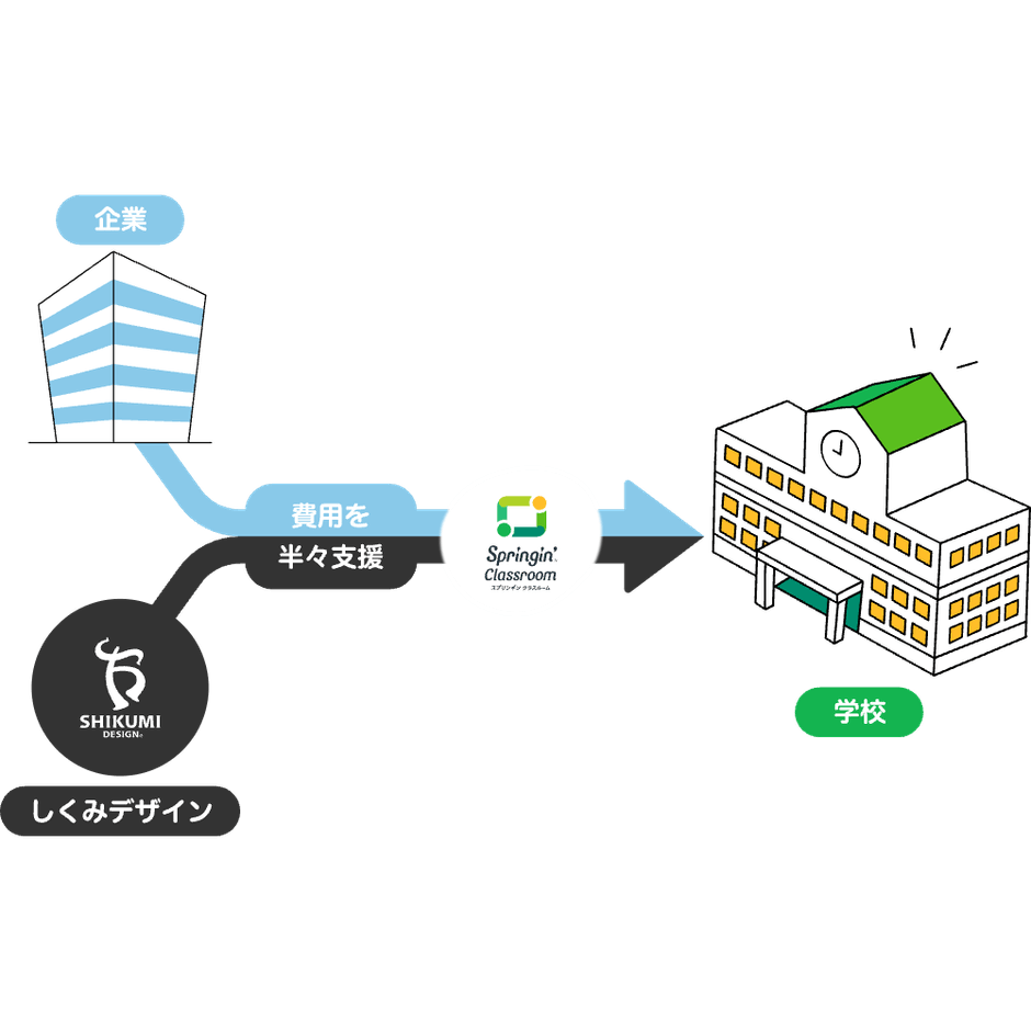 この課題を解決すべく、企業が1口15万円で1校にSpringin’ Classroomを導入できる企業サポーター制度を開始しました。