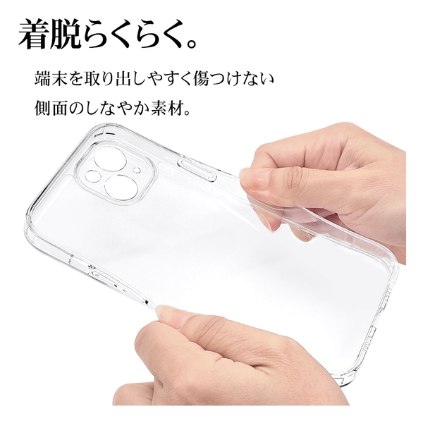 側面は弾力と柔軟性を兼ね備えたTPU素材で端末を衝撃から保護。