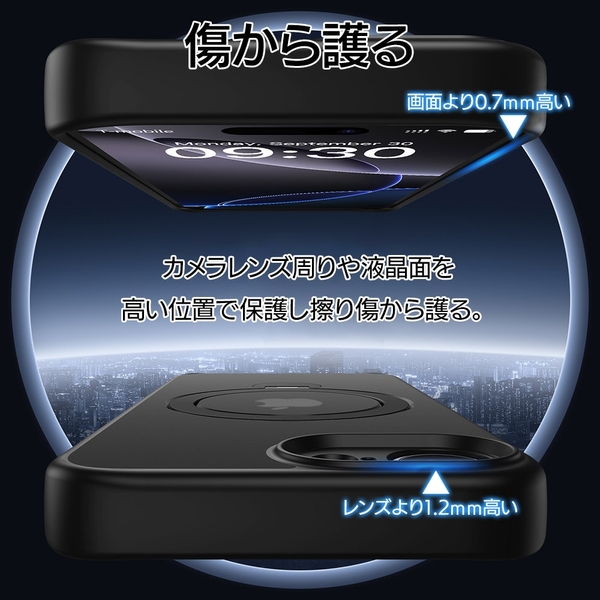MagSafeアクセサリー対応リング付きのハイブリッド背面ケースです。