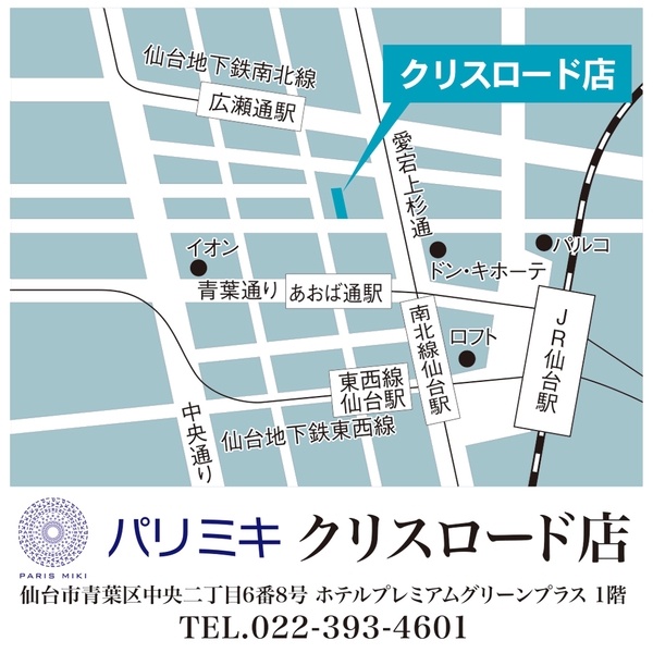 所在地:宮城県仙台市青葉区中央2-6-8 ホテルプレミアムグリーンプラス 1F