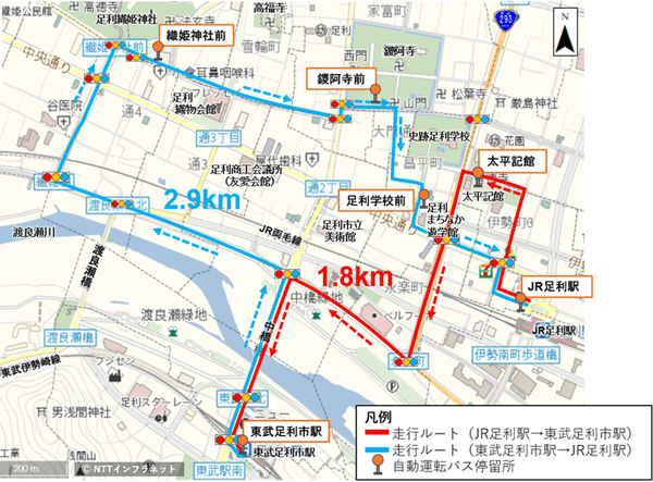 ■走行ルート:JR足利駅および東武足利市駅を起終点に、観光施設・商業施設を周遊するルート