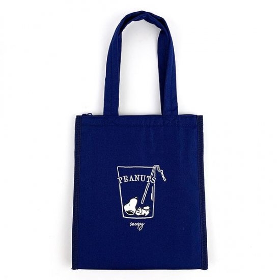 ネイビーの本体にグラスに入ったスヌーピーのデザインがかわいい、ランチバッグです。縦長のフォルムで、スタイリッシュな雰囲気もありますよね。持ち手部分も長めなので、肩にかけることも◎