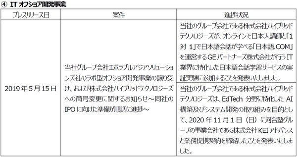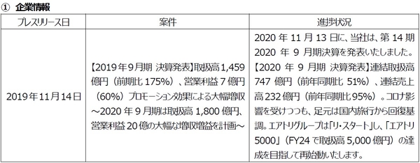 One Asiaのビジョンをかかげ、アジアを舞台に、エアトリ旅行事業、訪日旅行事業、ITオフショア開発事業、ライフイノベーション事業と投資事業を手掛ける株式会社エアトリ(本社:東京都港区、代表取締役社長 兼 CFO:柴田 裕亮、証券コード:6191、以下当社) は、これまでに発表いたしましたプレスリリースの各案件につき、12月1日時点において進捗がありました主な案件の状況について、以下の通りご報告いたします。