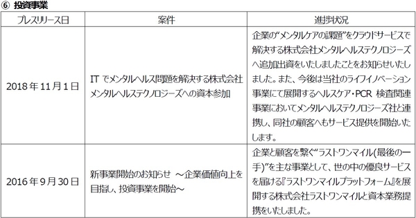 本日時点において、撤退を決定した案件はありません。今後、当社の事業戦略上において撤退を決定した案件が発生する場合には、他案件の進捗状況のご報告とともにお知らせいたします。