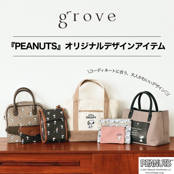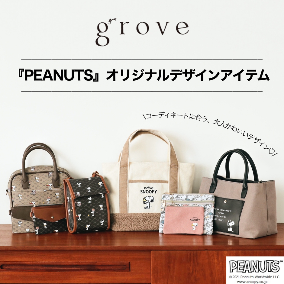 「PEANUTS」と「grove」のオリジナル デザインアイテムが登場! 大人っぽいデザインのバッグがラインナップ
