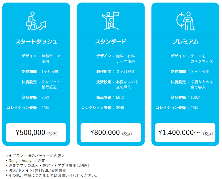 いずれのプランにも、ショップオープン後10時間のサポートを含みます。